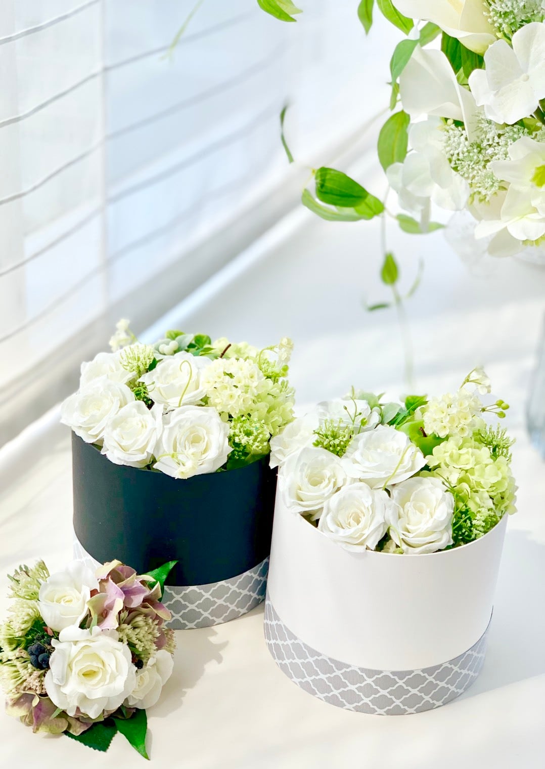 カラー:ホワイトbox ブラックbox (お花はいずれもホワイト&グリーン)